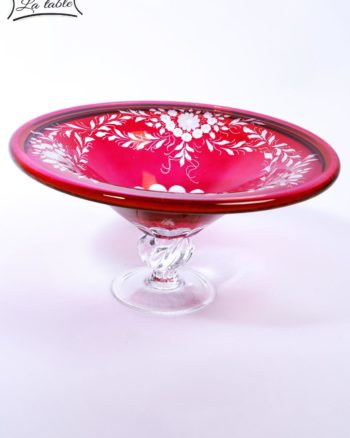 Red Floral Crystal Plate with Stand